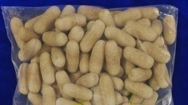 அவற்றை வெளியே எடுத்து பார்த்தபோது, ரூ.6.31 கோடி மதிப்பிலான 902 கிராம் ஹெராயின் போதைப்பொருள் இருந்தது கண்டுபிடிக்கப்பட்டது. அவற்றைப் பறிமுதல் செய்த அதிகாரிகள், அவரைக் கைது செய்தனர்.