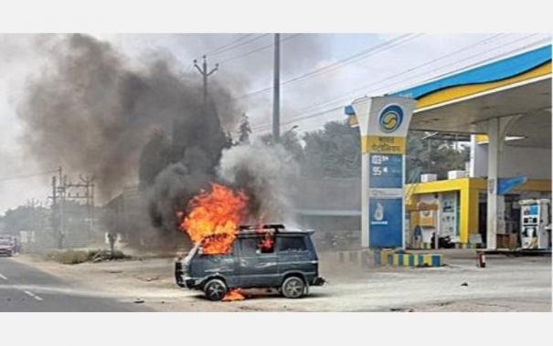 இவரது ஆம்னி வேனை பழுது பார்ப்பதற்காக அதே ஊரைச் சேர்ந்த மாணிக்கம் திண்டுக்கல்லுக்கு ஓட்டிச் சென்றார். வேனில் நாகேந்திரன்(26), விக்னேஷ்(18) ஆகியோர் இருந்தனர். திண்டுக்கல்லில் கரூர் சாலையில் உள்ள பெட்ரோல் பங்கில் ஆம்னி வேனுக்கு பெட்ரோல் நிரப்பினர். அங்கிருந்து வெளியேறும் முன்பு வேனின் கீழ் பகுதியில் இருந்து தீப்பொறி பறந்து மளமளவென எரியத் தொடங்கியது.