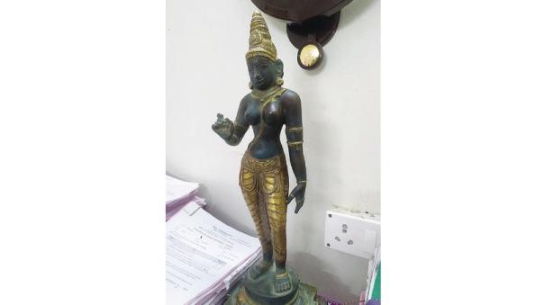 வேலூர் மாவட்டம் அரியூர் காவல் துறையினர் ஆவாரம் பாளையம் கிராமத்தில் நேற்று வாகன தணிக்கையில் ஈடுபட்டிருந்தனர். அப்போது, சந்தேகத்துக்கிடமாக இரு சக்கர வாகனத்தில் மூட்டையுடன் வந்தவர்களை மடக்கி பிடித்தனர். அவர்கள் வைத்திருந்த பையை சோதனையிட்டதில், சுமார் ஒன்றரை அடி உயரமுள்ள ஐம்பொன்னால் ஆன அம்மன் சிலை இருப்பது தெரியவந்தது.